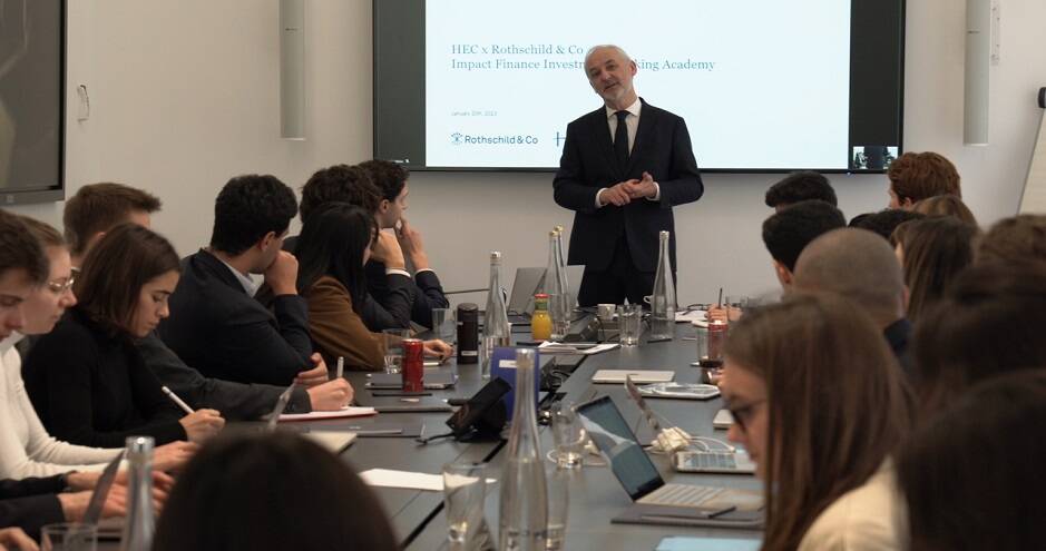 The Rothschild & Co Impact Finance - Investment Banking Academy enables M1 Master students on the Grande Ecole program to discover the concrete application of social, environmental and governance (ESG) issues in finance. The first edition of this new finance elective took place in January 2023, and forms the teaching pillar of the "Data and Impact Investment" chair formalized on April 20, 2023 between HEC Paris and Rothschild & Co.