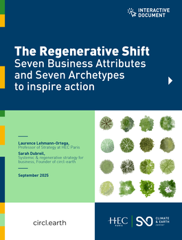 Regenerative approaches integrate nature into socio-economic systems, going beyond sustainability and circularity to actively restore planetary health. By embracing systems thinking, adaptation, collaboration, and nature-based solutions, businesses can strengthen climate resilience and halt biodiversity loss. This work by Laurence Lehmann-Ortega, HEC Paris Professor of Strategy and Sarah Dubreil, Founder of circl-earth, bridges research and practice to help organizations, policymakers, and educators embed regenerative principles into strategies that drive transformational and climate-resilient change.
