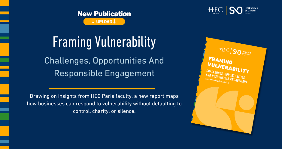 Le rapport « Framing Vulnerability : challenges, opportunities, and responsible engagement » d’Octavio De Barros, chercheur postdoctoral au Centre Inclusive Economy d’HEC, montre que les mentalités organisationnelles fondées sur le contrôle et l’efficacité entrent souvent en conflit avec la réalité vécue par les personnes vulnérables qu’elles soient employées, clients, fournisseurs ou communautés.