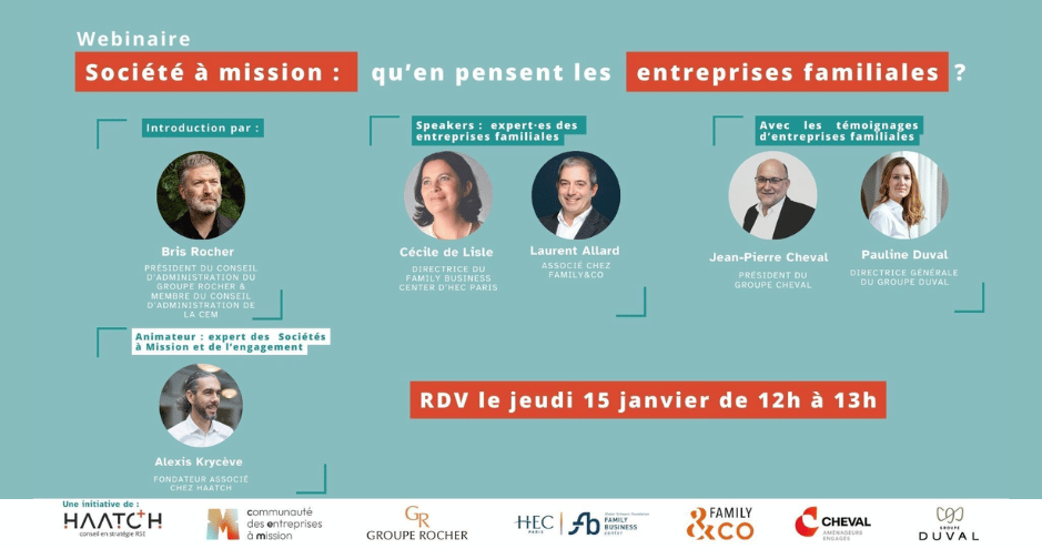 Le Family Business Center d’HEC Paris a co-organisé un webinaire consacré à la place et aux apports de la société à mission dans les entreprises familiales, aux côtés de la Communauté des entreprises à mission, Family & Co et HAATCH.